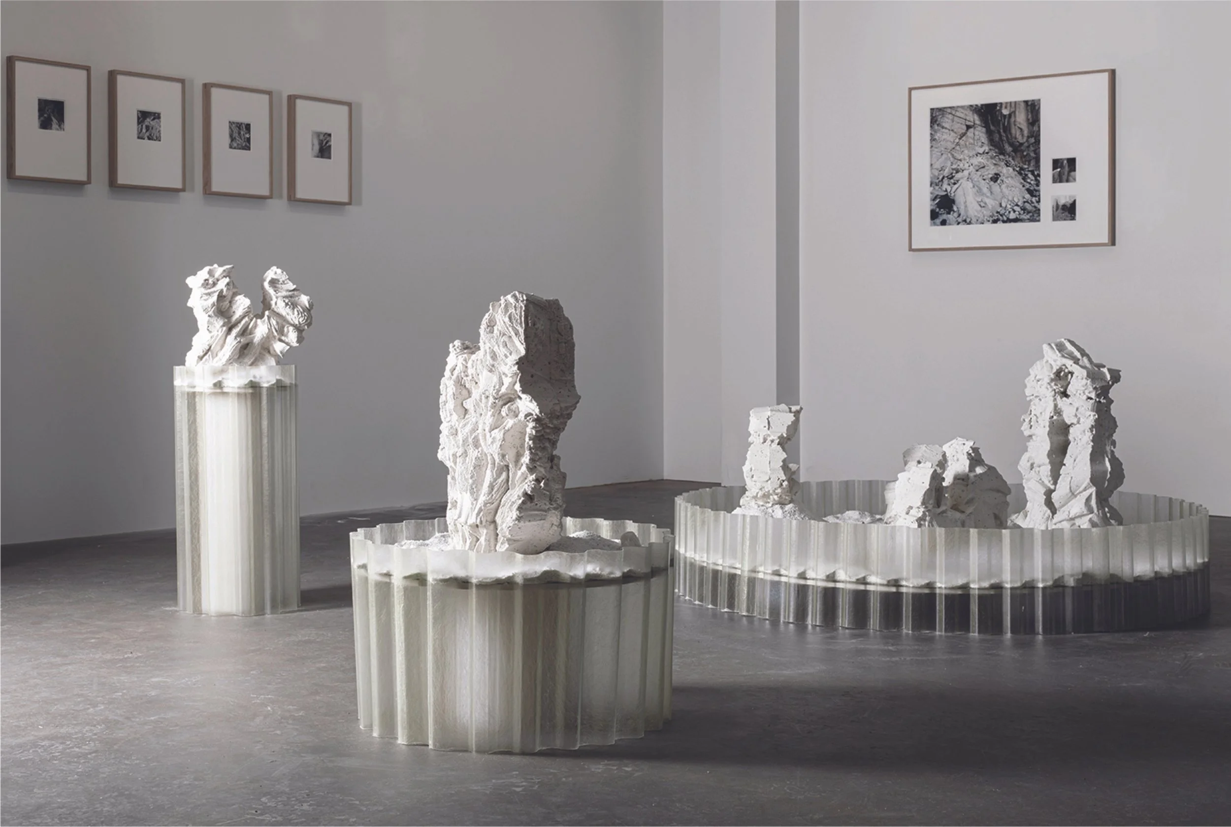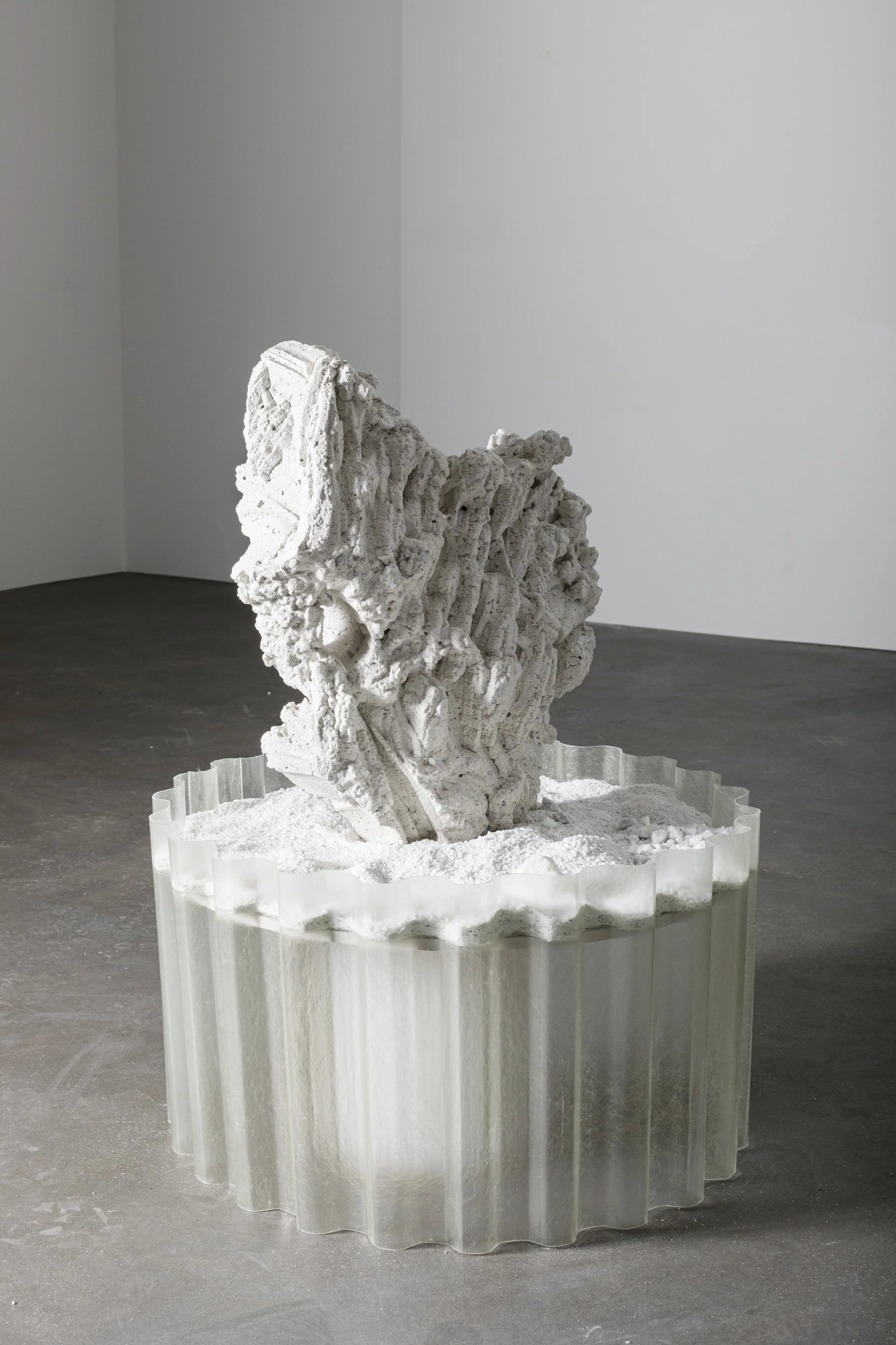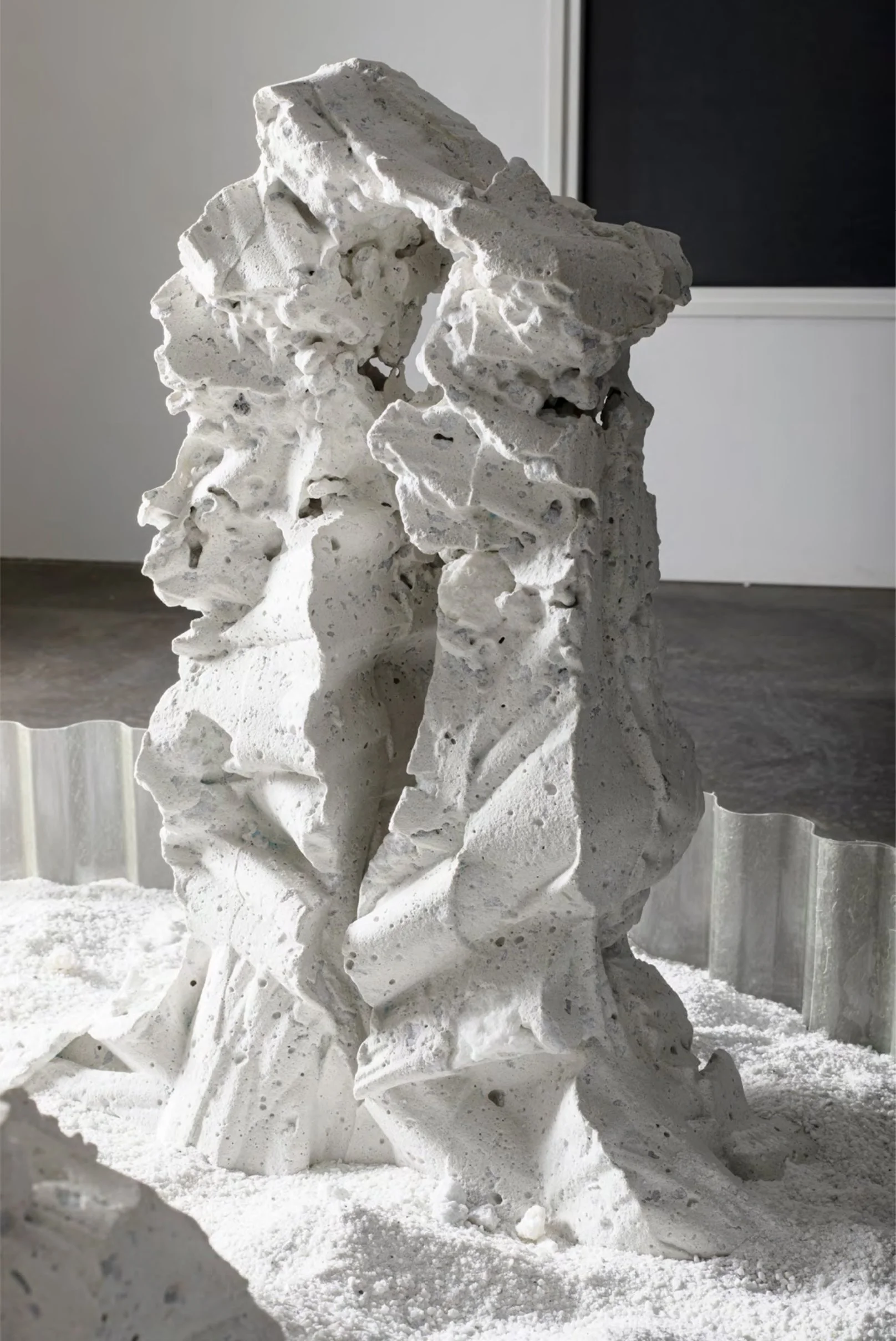 On powdered ground Sculpture casted in white cement and marble stone, sand.
